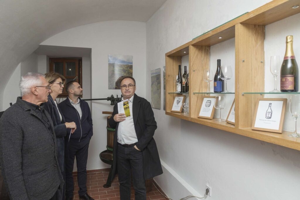 Izložbeni postav „Priča o vinu“ realiziran je u sklopu projekta „Centrum Mundi – vinska ruta“ koji provodi Turistička zajednica područja Centar svijeta, a sufinanciran je sredstvima Hrvatske turističke zajednice iz Fonda za udružene turističke zajednice.