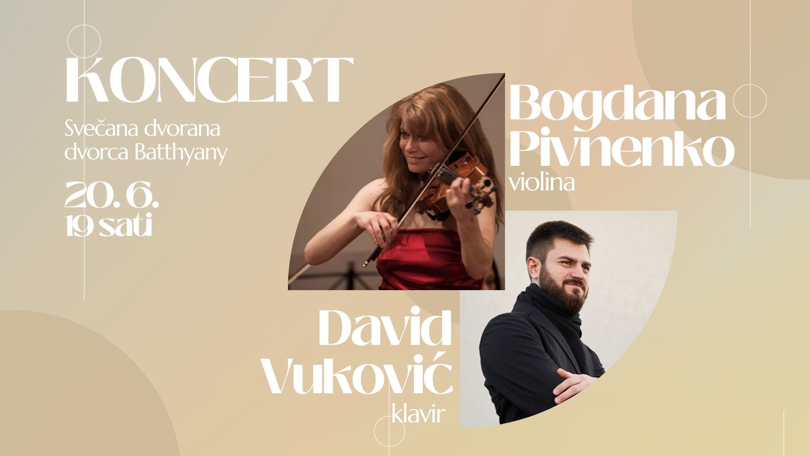 Pozivamo vas na koncert Bogdane Pivnenko (violina) i Davida Vukovića (klavir) u utorak, 20. lipnja u 19 sati. Koncert će biti u Svečanoj dvorani dvorca Batthyany, a ulaz je besplatan.