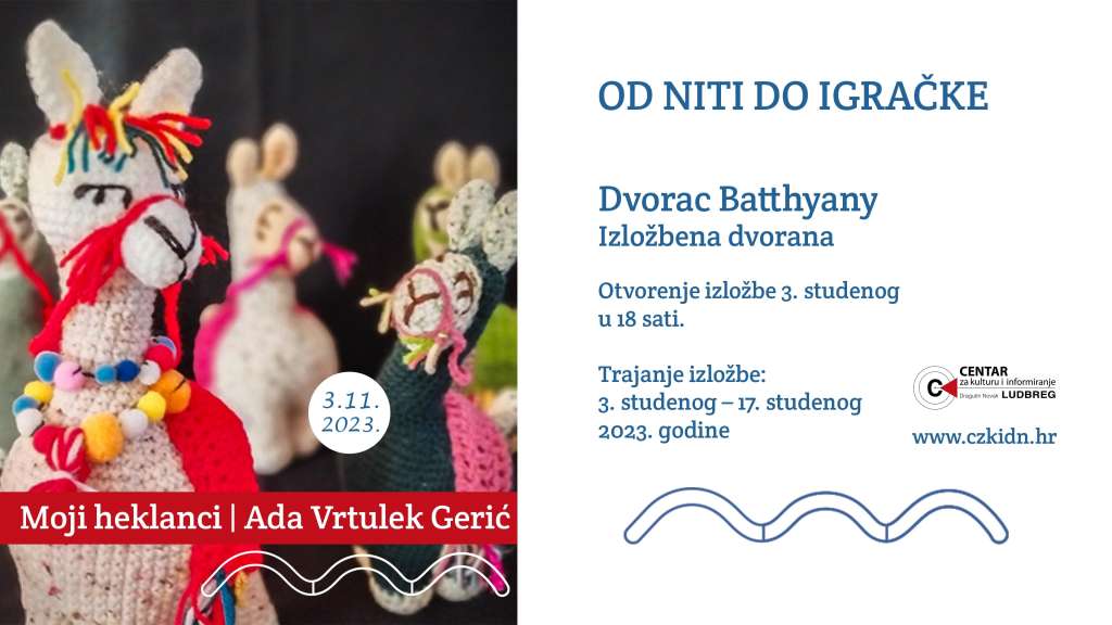 Pozivamo vas na izložbu heklanih igračaka Ade Vrtukek Gerić pod nazivom “OD NITI DO IGRAČKE – Moji heklanci”. Otvorenje izložbe održat će se u sklopu programa “Ludbreg petkom” 3. studenoga s početkom u 18 sati u izložbenom prostoru dvorca Batthyany. Ada Vrtulek Gerić rođena je u Varaždinu. Završila je Tekstilno-tehnološki fakultet Sveučilišta u Zagrebu i […]