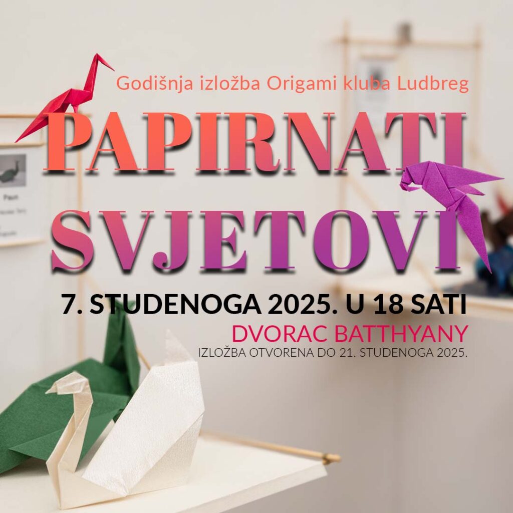 Pozivamo vas na godišnju izložbu Origami kluba Ludbreg pod nazivom “Papirnati svjetovi“. Otvorenje izložbe bit će 7. studenoga u sklopu programa “Ludbreg petkom” u galeriji dvorca Batthyany u 18 sati, a ulaz je besplatan. Na izložbi će svoje radove predstaviti polaznici Origami kluba Ludbreg i njihov mentor Dragutin Gerić. Izložbu ćete moći razgledati do 21. […]